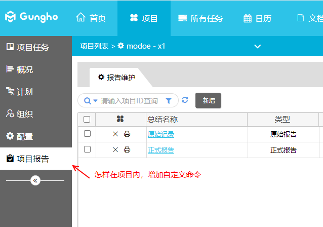 系統選擇某一個項目進入后,針對項目操作增加自定義命令,截圖如下